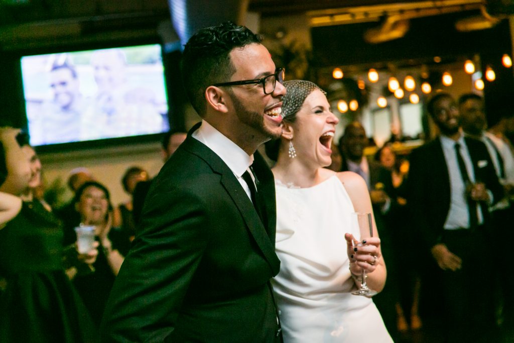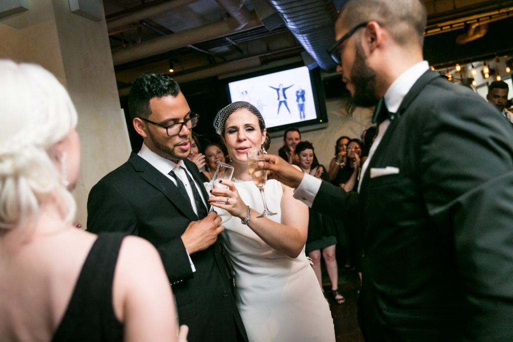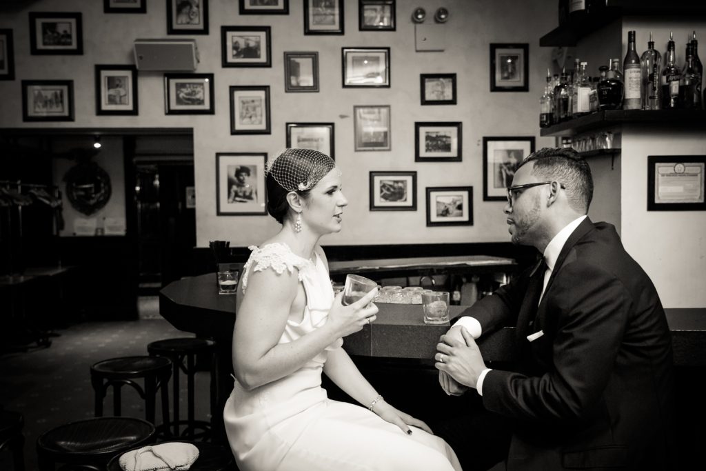 Next stop for these consummate New Yorkers was a typical slice joint, a.k.a. pizza parlor. Sharing a love of pizza meant sharing a slice at Little Bravo’s on 42nd Street. The bridal party joined us, and they were troopers livin’ la vida high carb for the sake of photos. The shots came out great, and since Jonathan and Meredith wouldn’t be doing the traditional cake cutting ceremony at their reception, eating a piece of pizza together was their own unique twist on tradition.