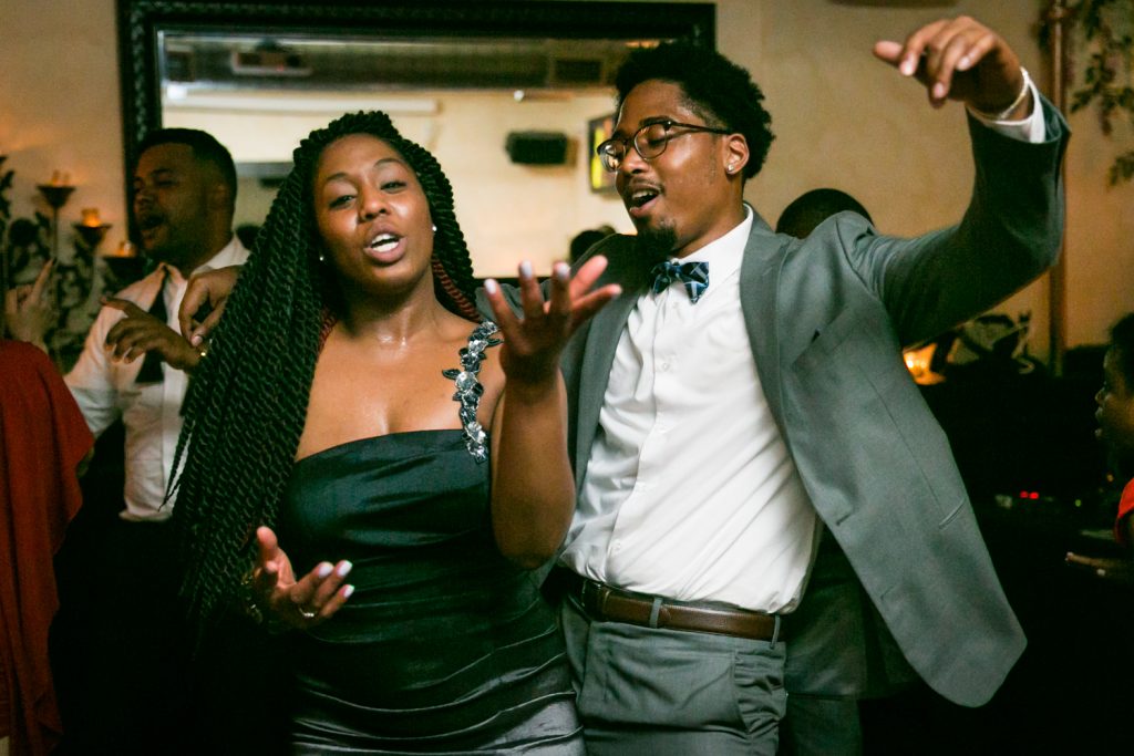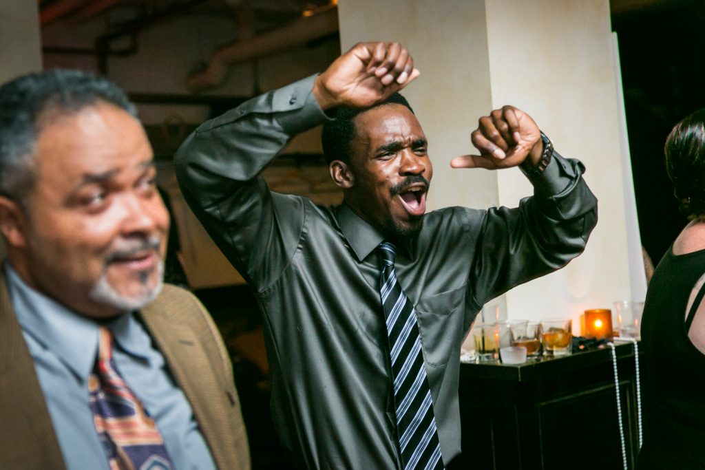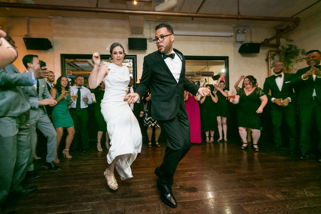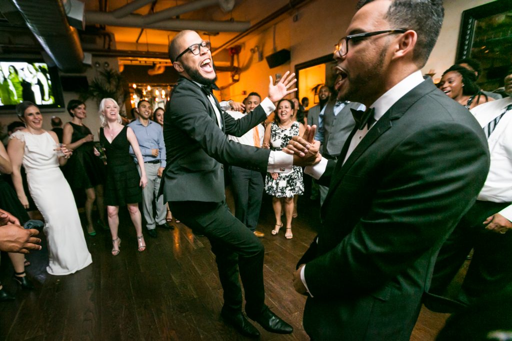 Finally we landed at the Liberty, a bar and restaurant on 35th Street that Meredith discovered and Jonathan came to love. The party had a hip-hop-meets-1920s-Gatsby theme to it, complete with Jack Daniels wedding favors to celebrate the end of prohibition as well as pearls and suspenders strewn about for decoration. There was no cake, but a tower of doughnuts from the Doughnut Plant. (I can personally vouch for the deliciousness of the Brooklyn blackout doughnut.) And there was plenty of hot dancing to match the heatwave we had on Saturday. Enjoy the pics, and congratulations again to Meredith and Jonathan!