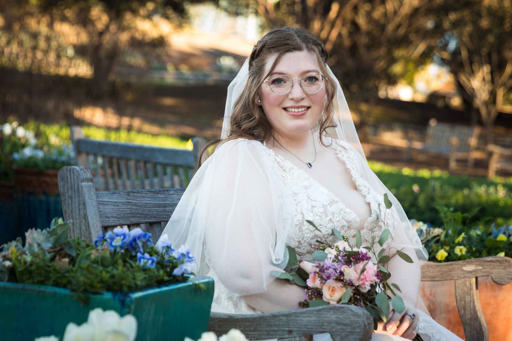 Come to the shoot already dressed. Kind reminder that the garden does not allow for any wardrobe changes on the property. You will need to arrive at the garden already in your dress. We did put in Natalie’s veil, but that was it.