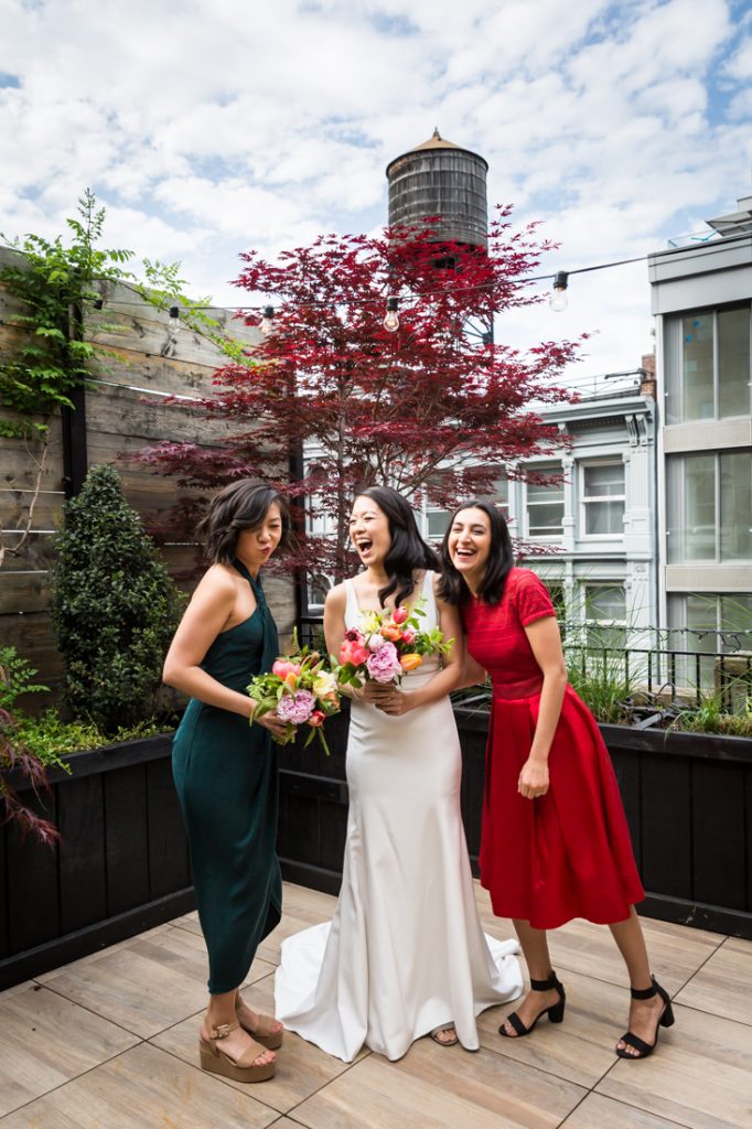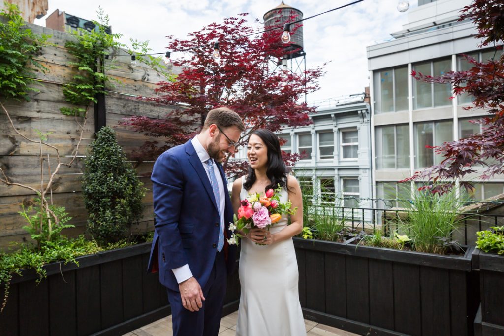 I was not going to let Genny’s terrace with such a beautiful view over the SoHo rooftops go to waste, and we successfully knocked out all the family photos plus a ‘first look’ well ahead of when Genny and Blaine were due to walk down the aisle. By the way, I can’t say enough good things about the Broome Hotel. This was my first time in the space, and I witnessed first hand how the staff went out of their way to make Genny and her family comfortable. In addition to being a chic hotel with a convenient location, the hotel also has a precious, hidden courtyard that is perfect for photos.