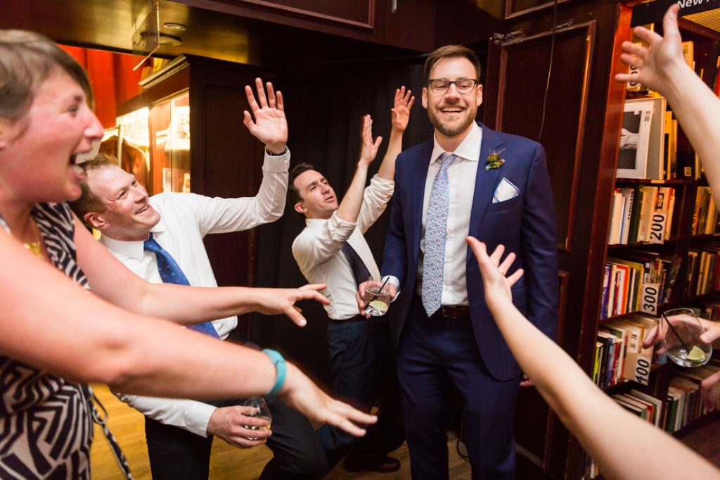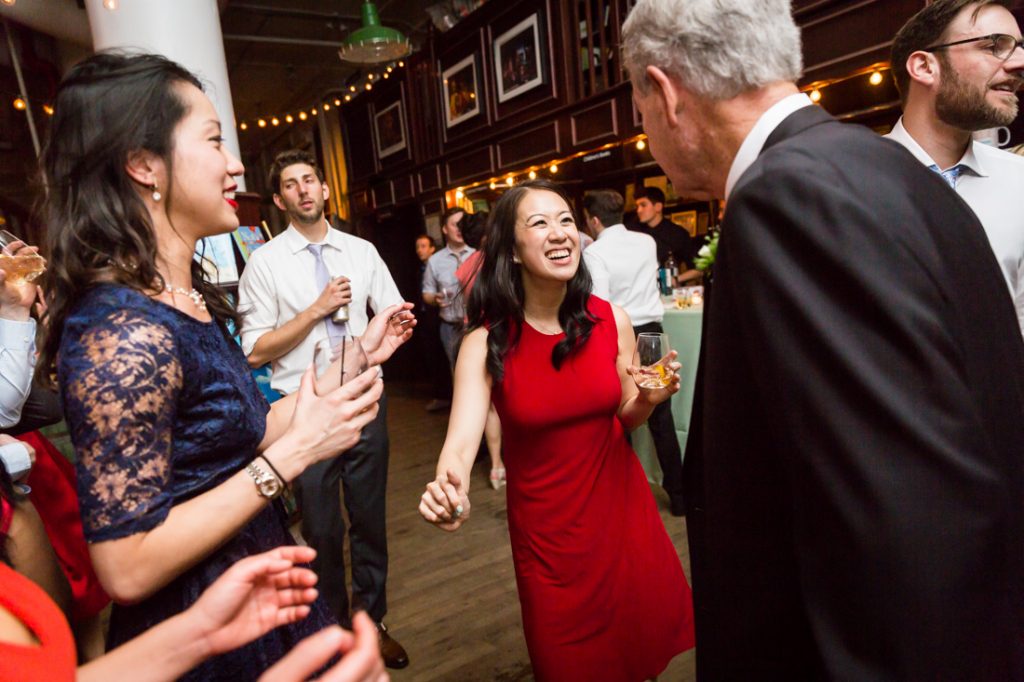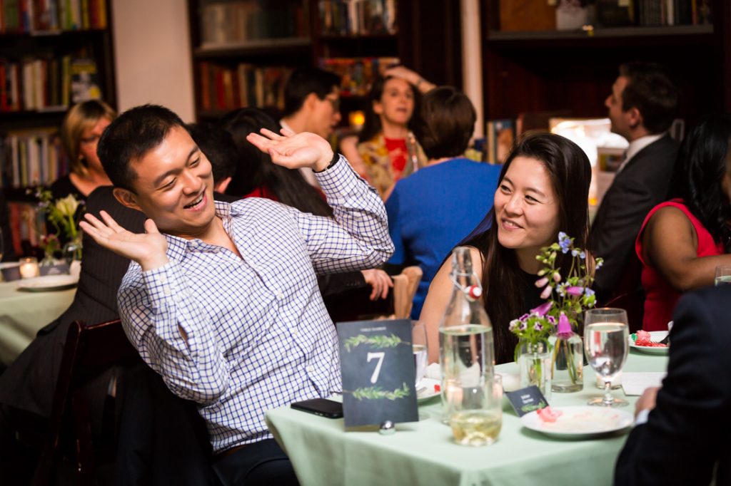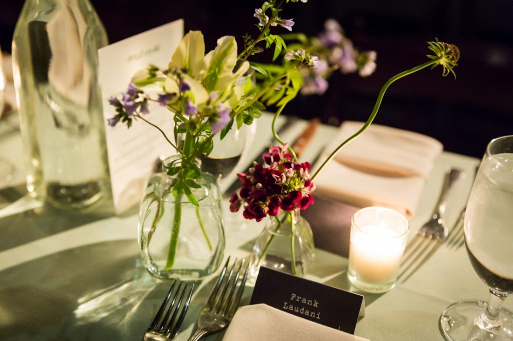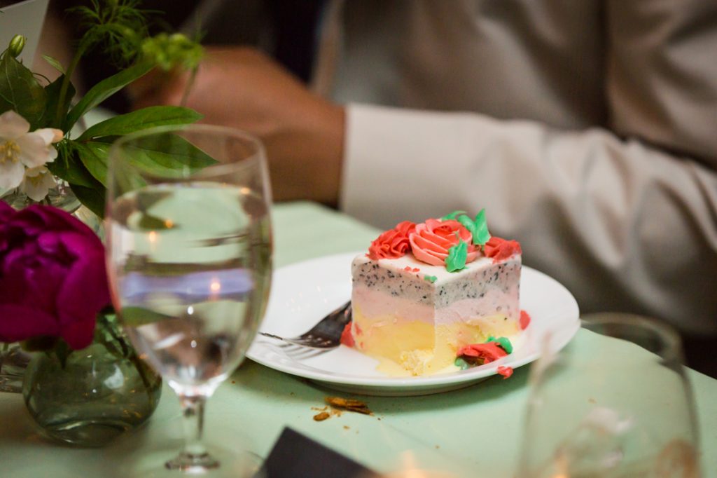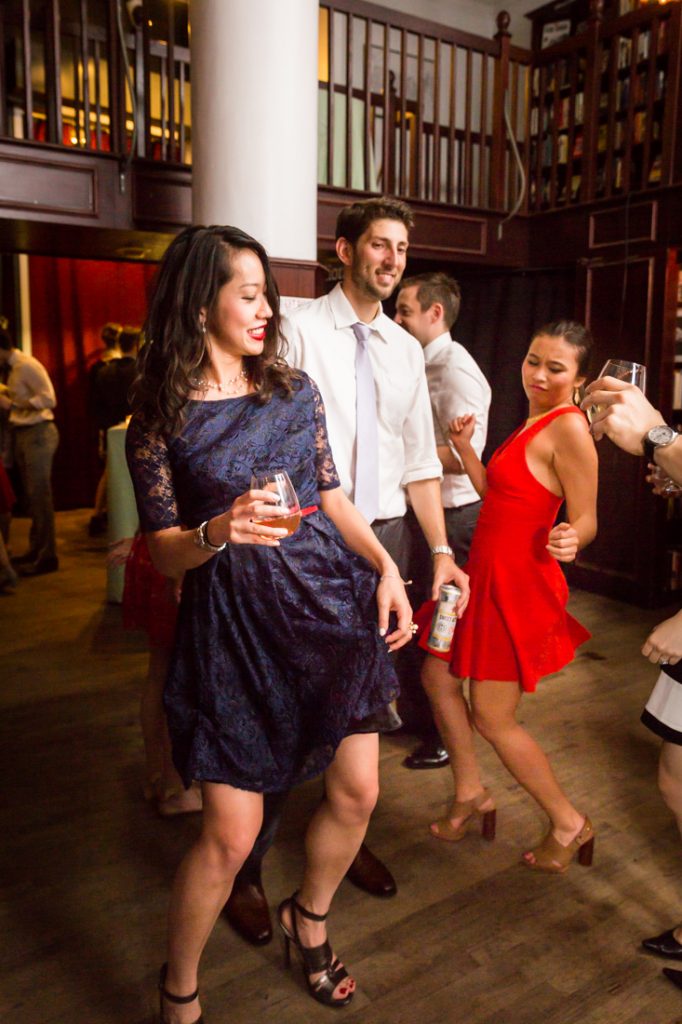 After the ceremony, the party began. Josh and his staff at Housing Works did a fantastic job on the food and service; I have never had an event go wrong at Housing Works. As with the getting ready photos, the reception was totally low-key. No bouquet toss. Certainly, no garter toss. And not even a cake cutting. The cake, by the way, was an ice cream cake from the Chinatown Ice Cream Factory. It was cut in the back and served to guests without fanfare. Personally, having ice cream cake at any event is fanfare enough! Seriously – all brides should serve ice cream cake at their weddings.