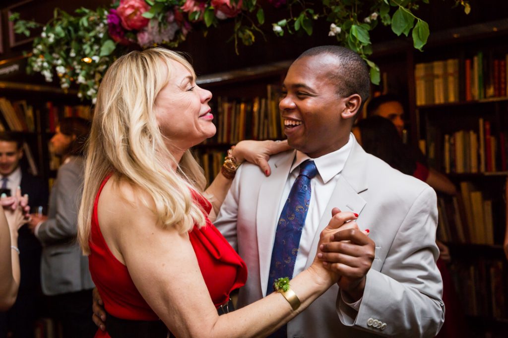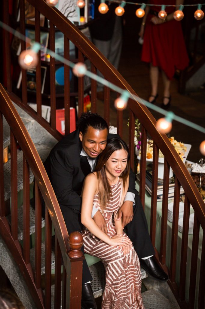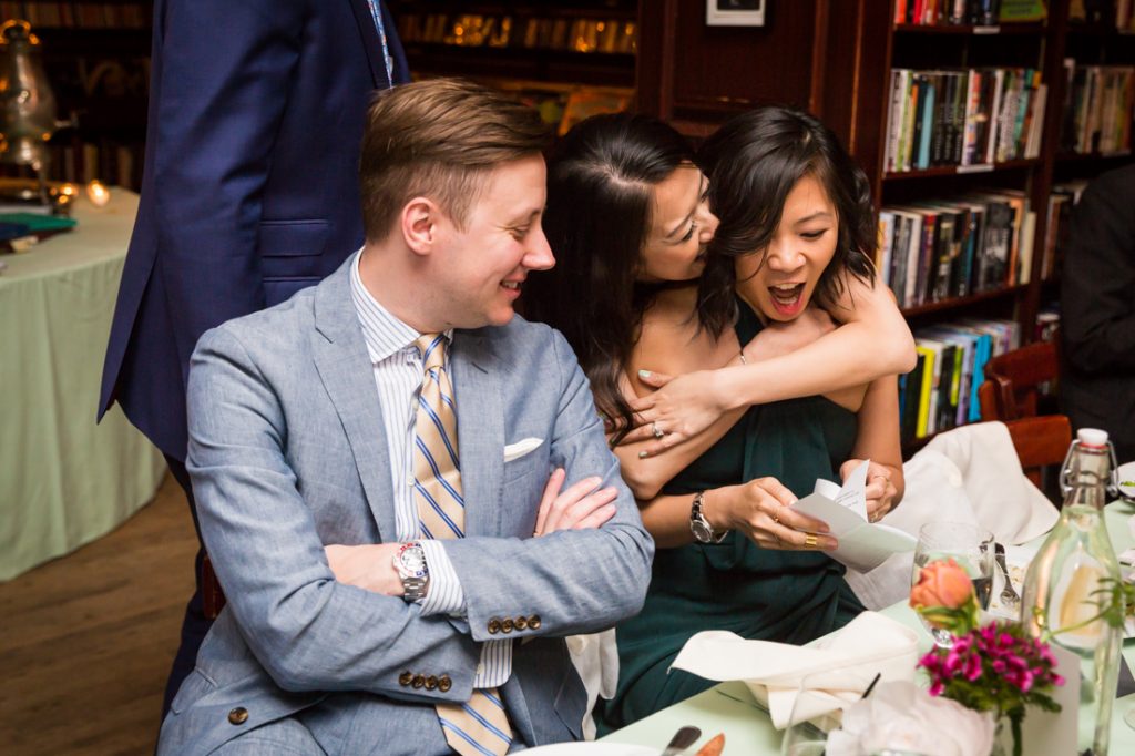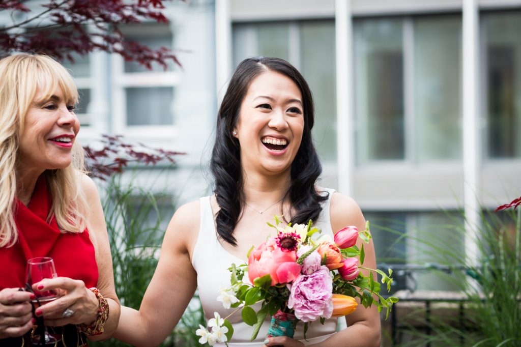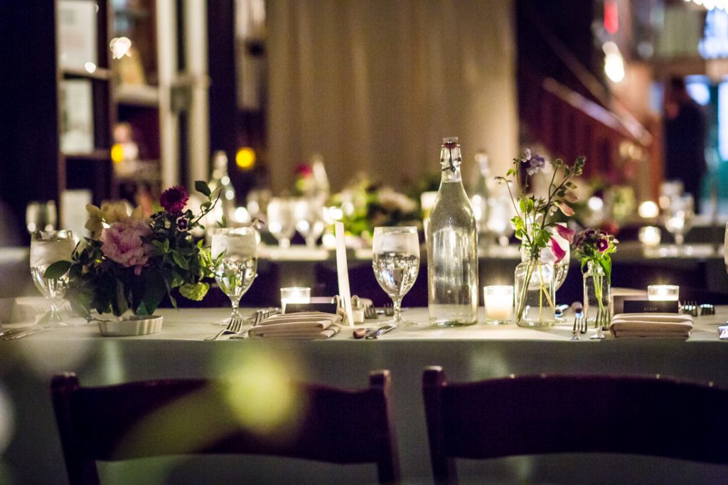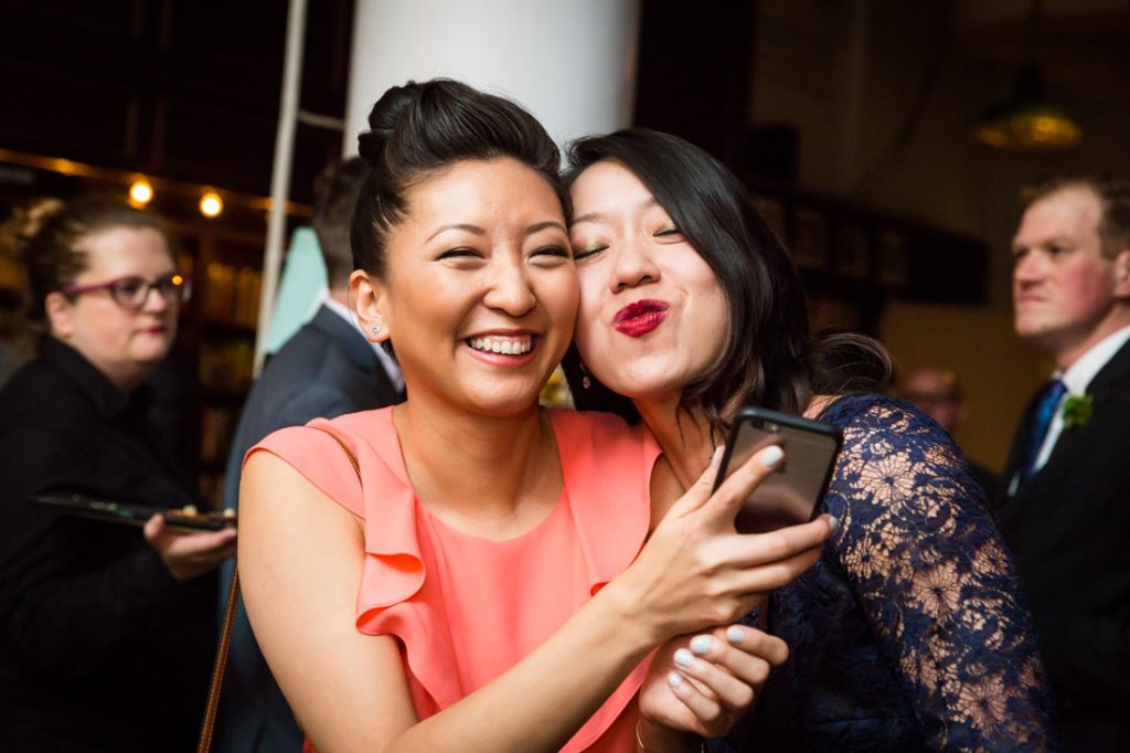 After the ceremony, the party began. Josh and his staff at Housing Works did a fantastic job on the food and service; I have never had an event go wrong at Housing Works. As with the getting ready photos, the reception was totally low-key. No bouquet toss. Certainly, no garter toss. And not even a cake cutting. The cake, by the way, was an ice cream cake from the Chinatown Ice Cream Factory. It was cut in the back and served to guests without fanfare. Personally, having ice cream cake at any event is fanfare enough! Seriously – all brides should serve ice cream cake at their weddings.