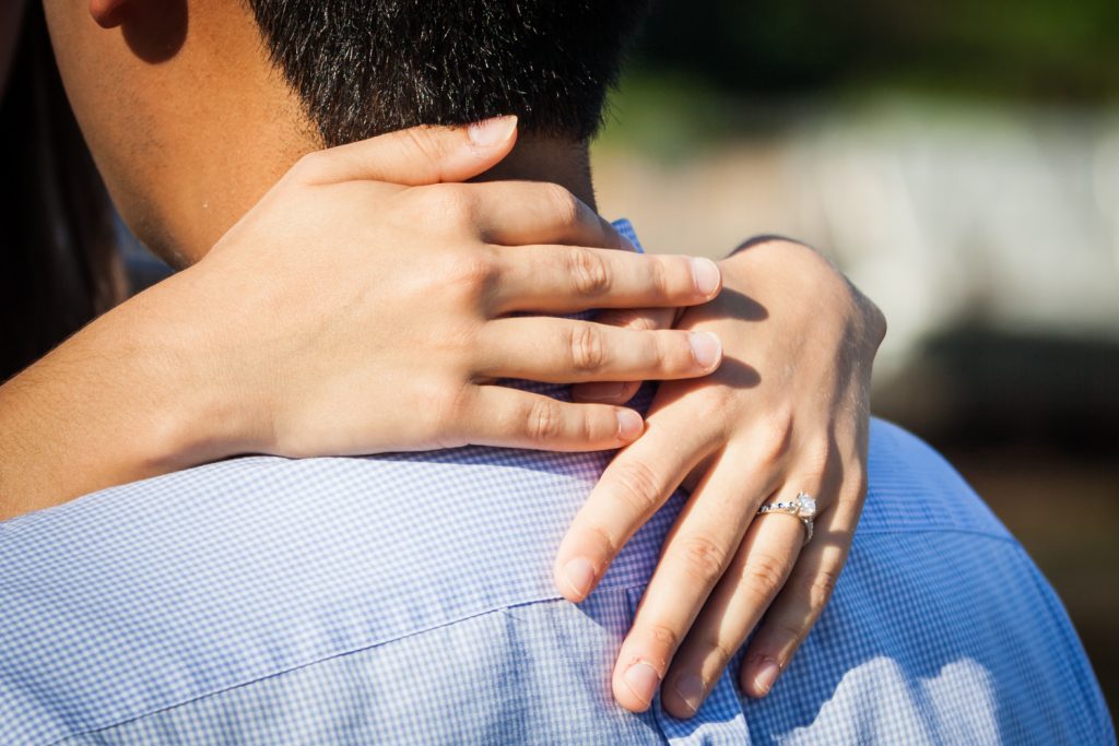 And speaking of prearranging, lots of work behind the scenes went into Mark’s proposal. In addition to our initial phone call, we met in person so both of us knew what the other looked like. This is crucial to a surprise proposal. If you can’t meet beforehand, then you should at least Skype so that you can physically identify your photographer. In addition, props are helpful. I had a client from the UK who I met for the first time at his proposal on the top of the Empire State Building. We had Skyped beforehand, but I was doubly sure it was him by the small Tiffany’s blue bag he was carrying. As with all my shoots, I always check in the night before via email. And with my surprise proposals, I include a detailed description of what I will be wearing so I am even more easily identifiable.