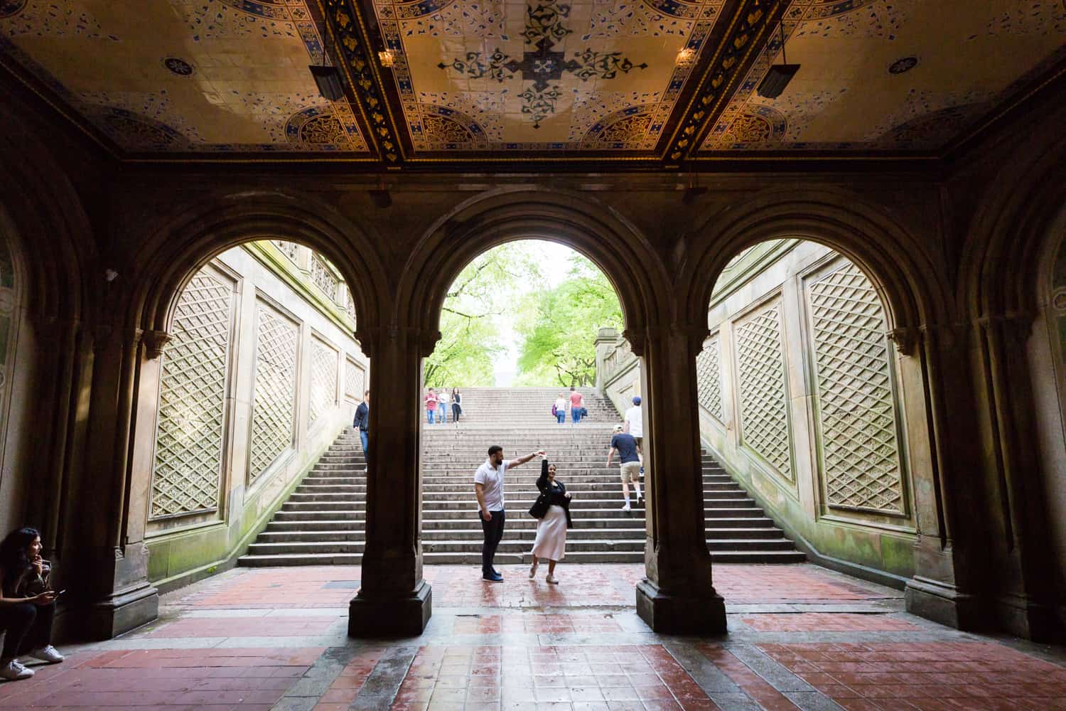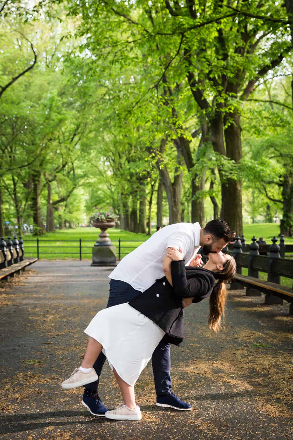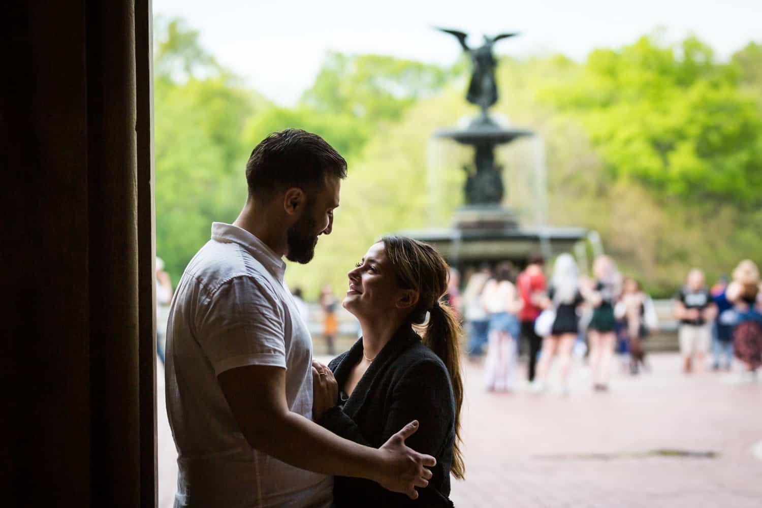 For Goran’s proposal to Sandra, Goran followed all of my tips and we thoroughly planned his proposal from start to finish. On the day of the proposal, Goran sent me a WhatsApp with photos of him and Sandra, so I knew exactly who to look out for by the Boathouse entrance. Goran is a strong man, and decided to row the entire length of the lake to the Ladies Pavilion and back. I definitely got my exercise running around the lake on this trip! Afterwards we took photos by the Trefoil Arch, Bethesda Fountain, over to the Mall, and finally the Pond.