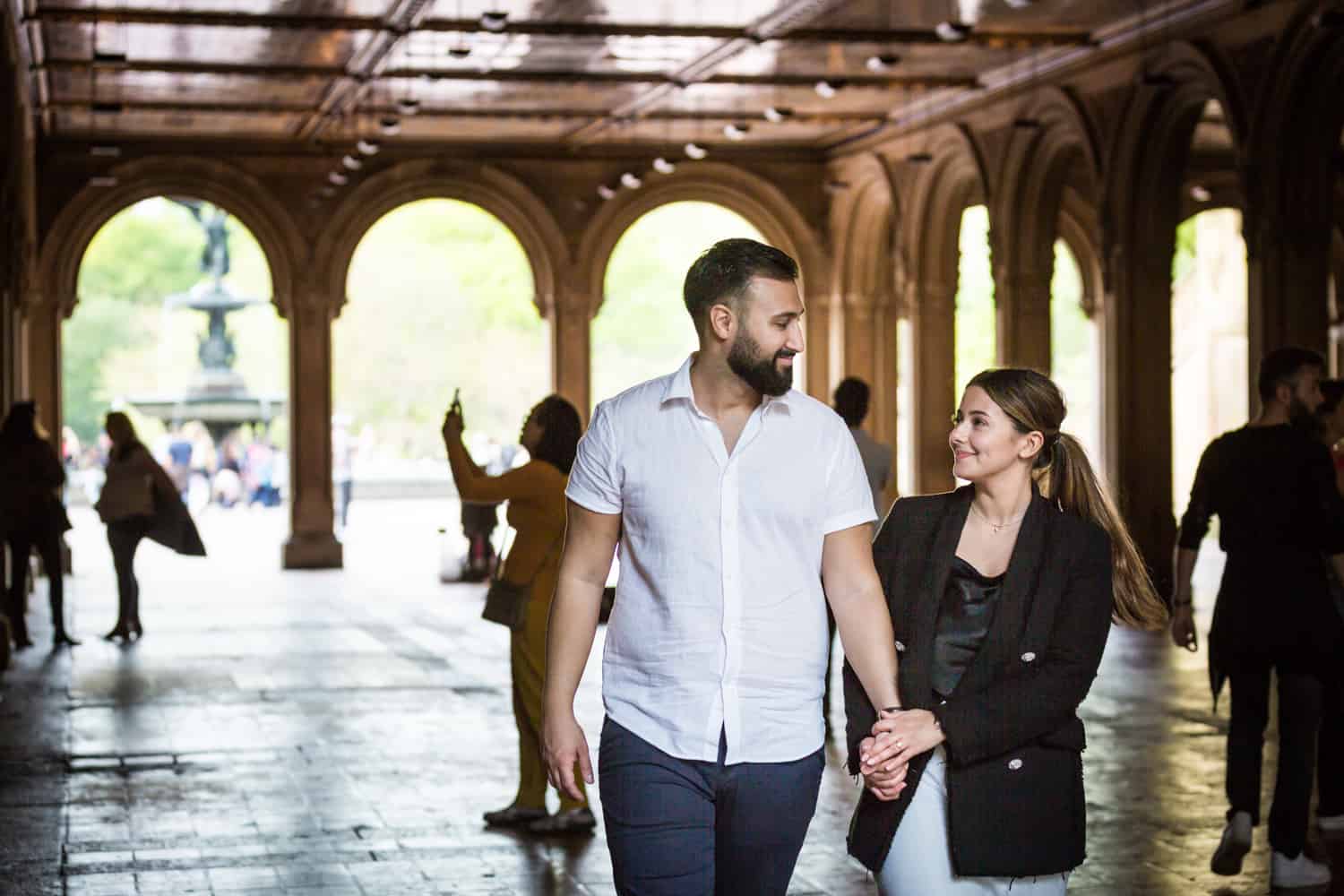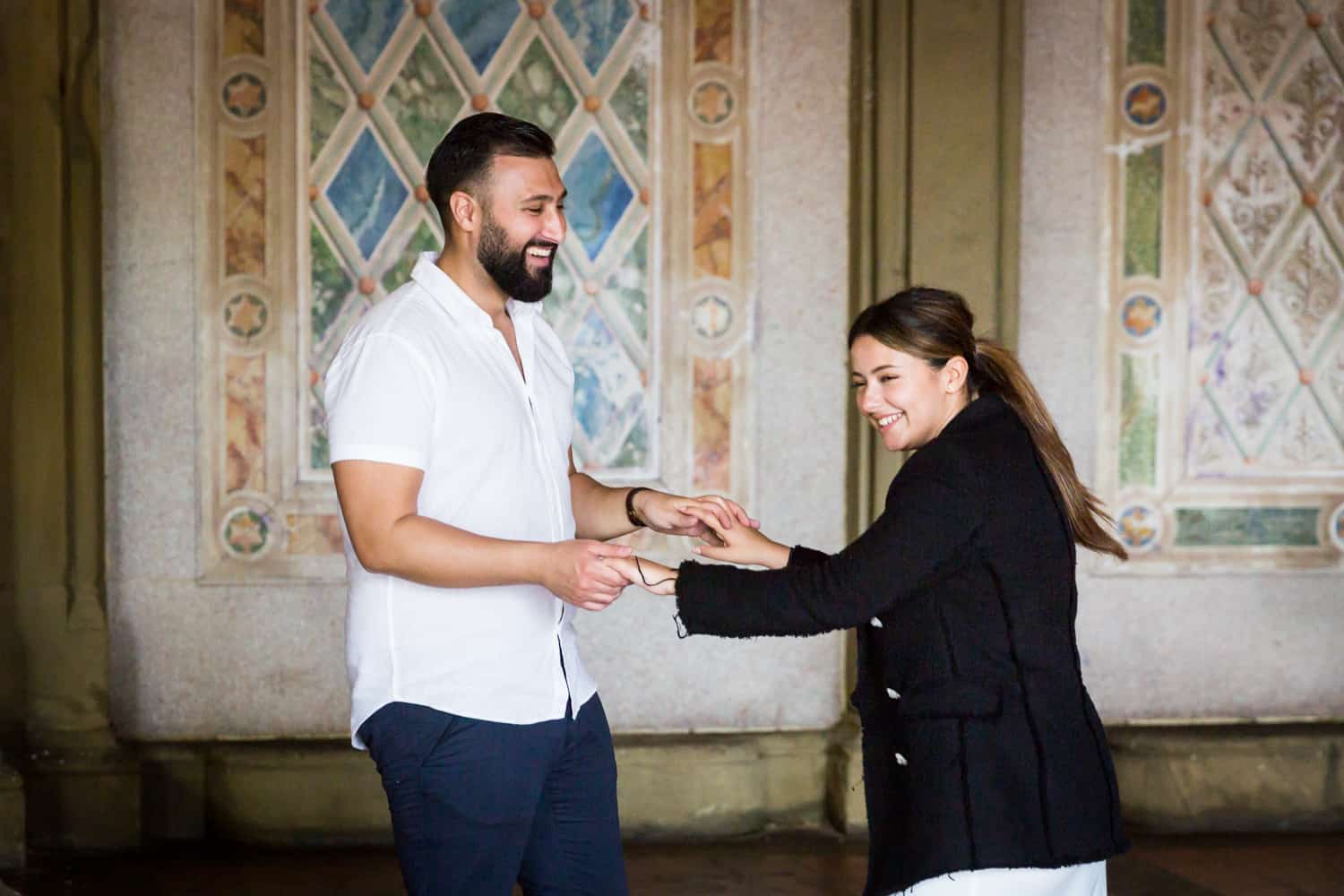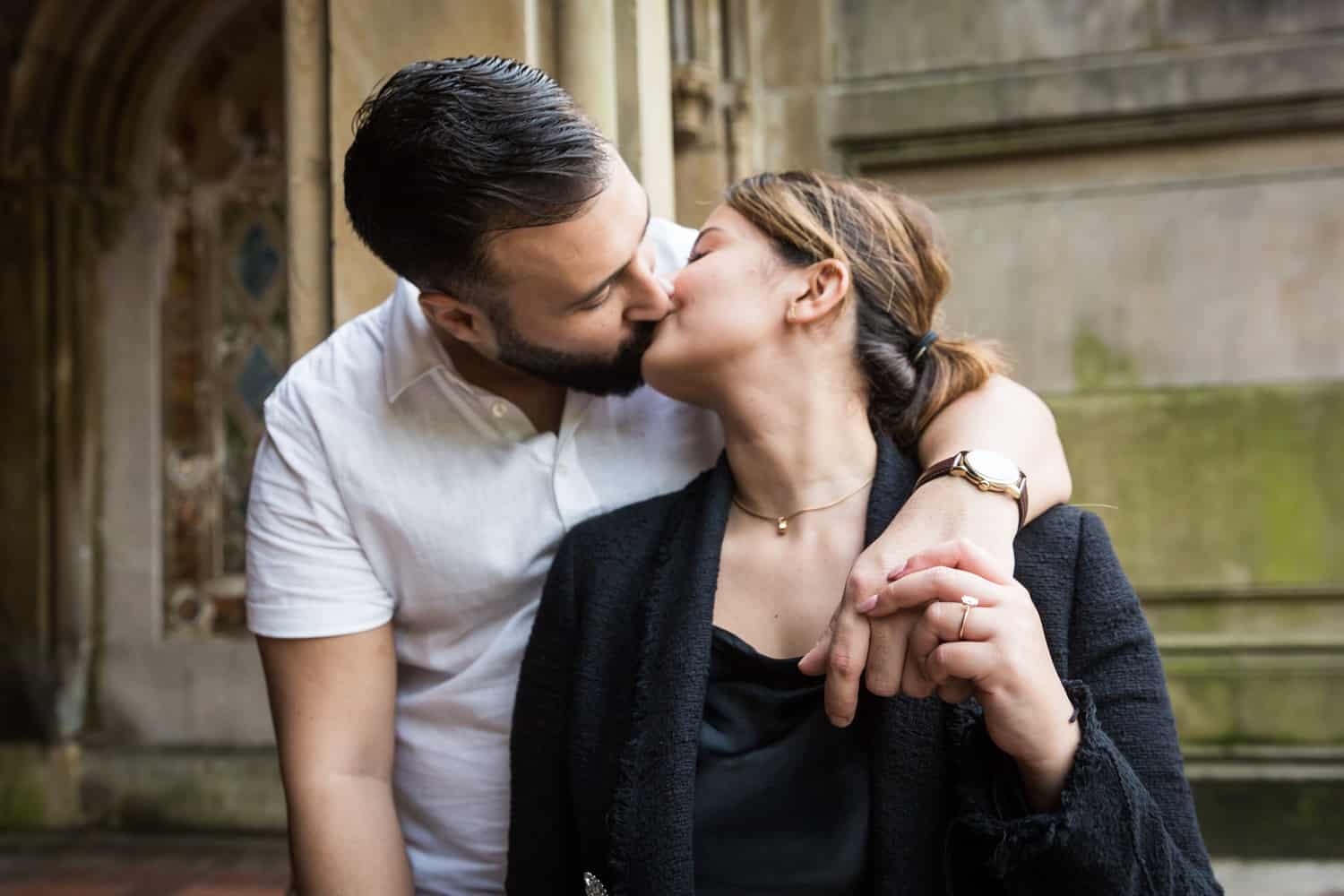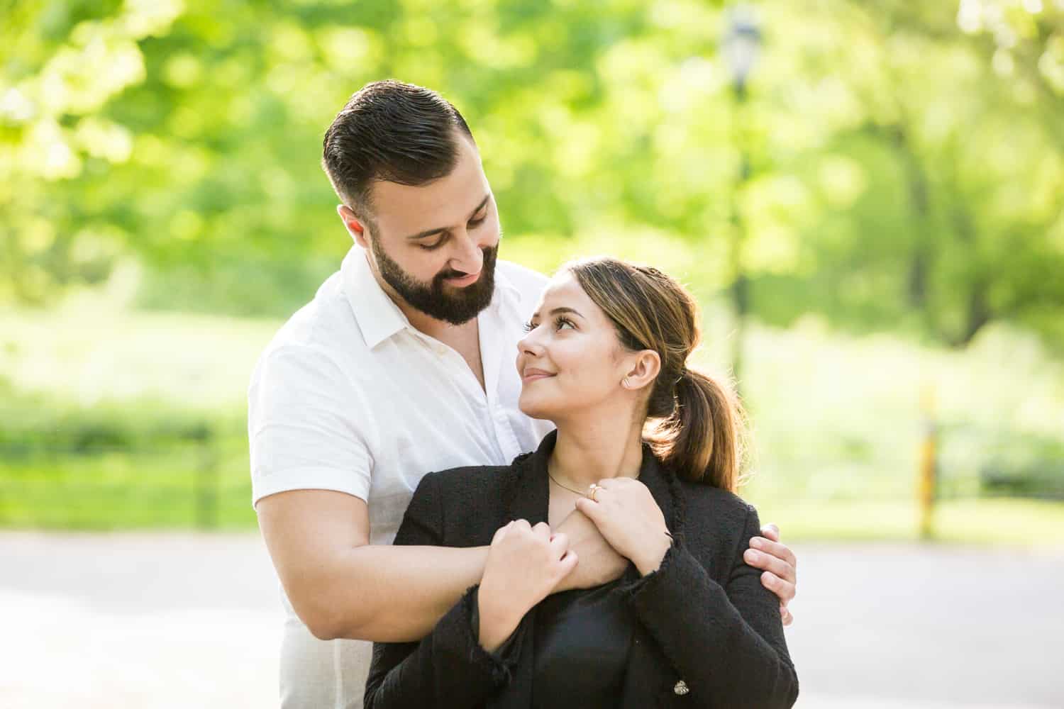 For Goran’s proposal to Sandra, Goran followed all of my tips and we thoroughly planned his proposal from start to finish. On the day of the proposal, Goran sent me a WhatsApp with photos of him and Sandra, so I knew exactly who to look out for by the Boathouse entrance. Goran is a strong man, and decided to row the entire length of the lake to the Ladies Pavilion and back. I definitely got my exercise running around the lake on this trip! Afterwards we took photos by the Trefoil Arch, Bethesda Fountain, over to the Mall, and finally the Pond.
