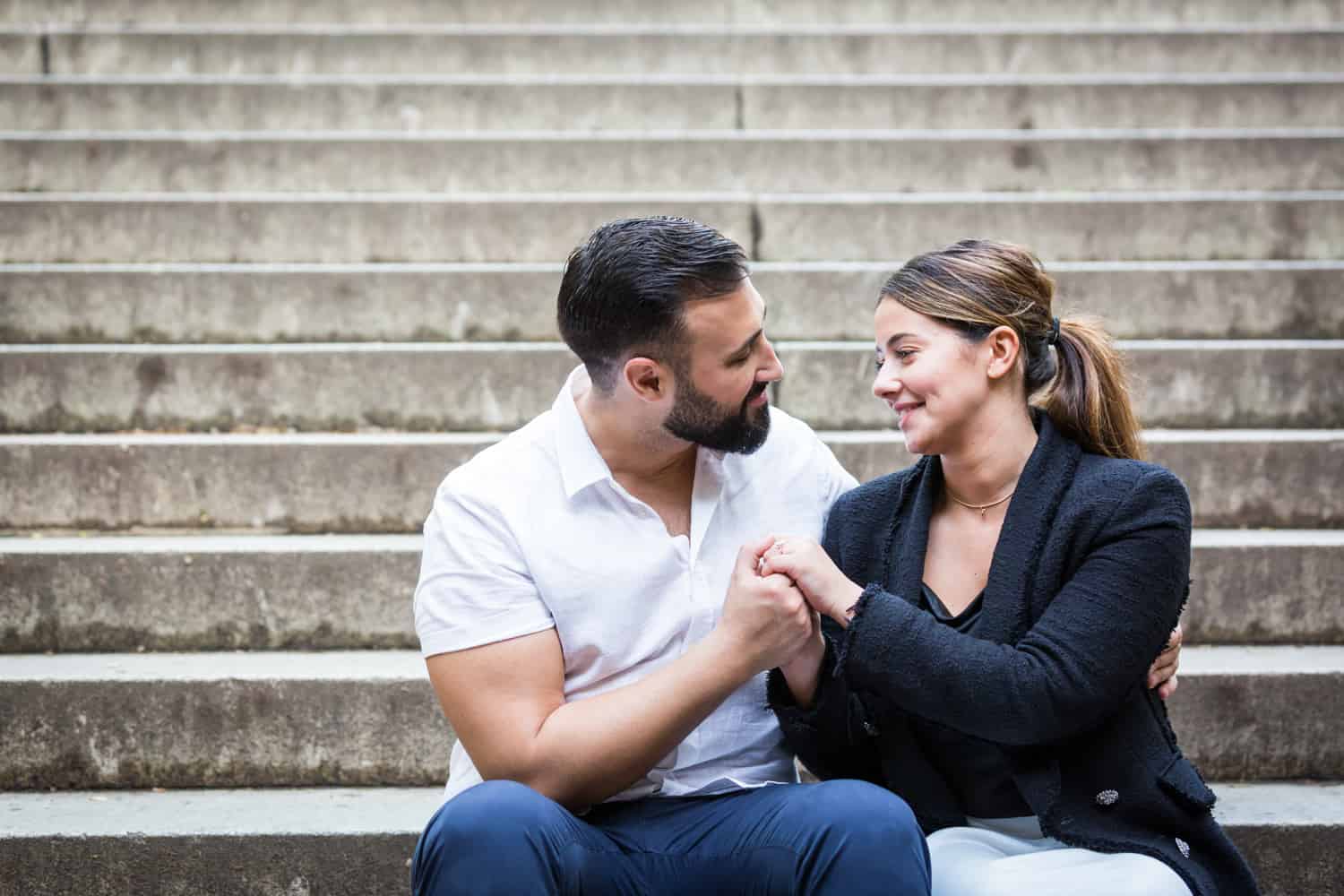 The bottom line for how to propose on Central Park Lake: my favorite spot to capture the proposal moment is the Wood Chip Vantage Point. Strategize with your photographer beforehand about what you will be wearing and the path you will take around the lake. Finally, have a plan for where you want to go after proposing on Central Park Lake. That’s it! Simple and romantic; you can’t go wrong with a Central Park Lake proposal.