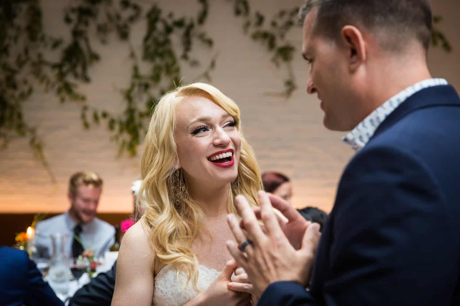 Picture it: you’re at a wedding during the reception, sitting at a table with friends, when up pops the official wedding photographer asking you to stop everything and take a photo. This always happens immediately after you’ve taken a big bite so you end up looking like the table chipmunk. Always. In today’s blog post, I have a better idea for table shots which will get you natural photos and avoid making the photographer the most hated person at your wedding.