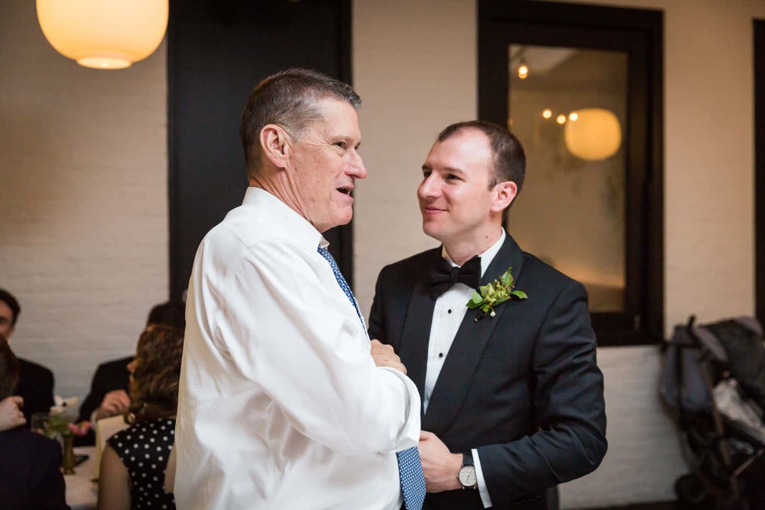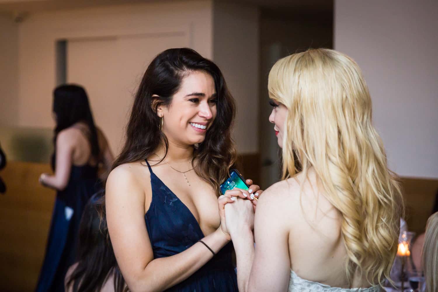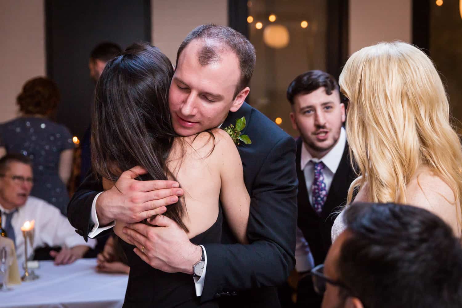 As a documentary-style photographer, I am strongly opposed to the traditional table shot. My style of photography means that my clients are seeking the most natural photos possible. No stiff poses. Ever. For most of the wedding, this translates to me capturing the action with a long lens from a corner of the room. As the photographer, I don’t step in and make a scene, and I also don’t ask guests to smile for the camera. [The exceptions being if any guest asks me to take their photo – absolutely! – and if I see a group of guests getting together on their own for a photo, in which case I will step in and ask them to remain posed for one more minute for my camera.]