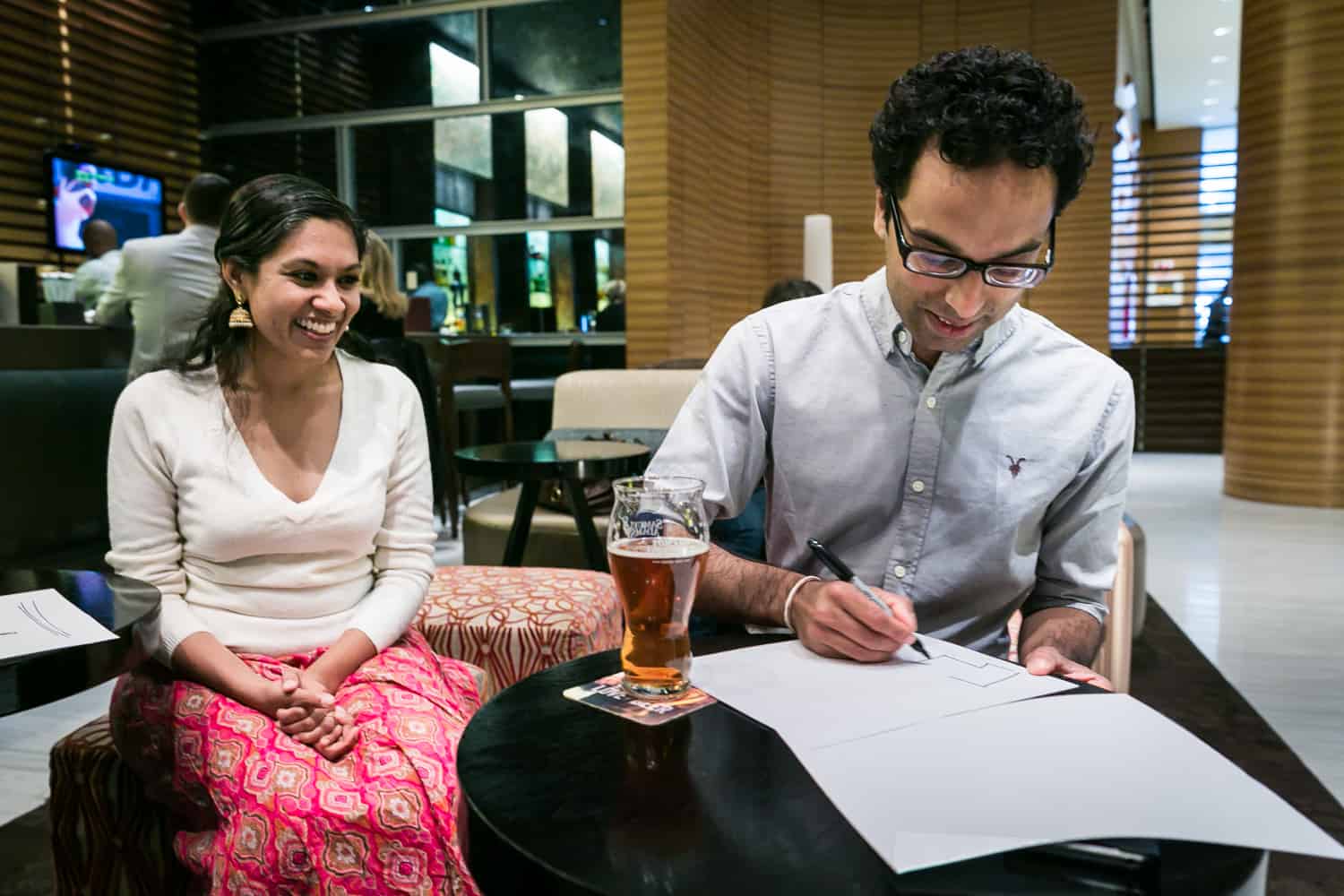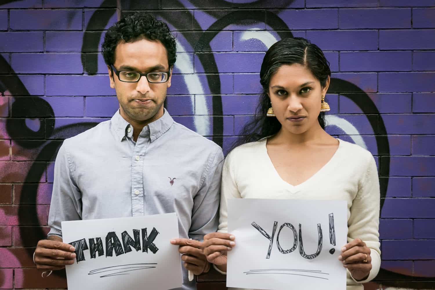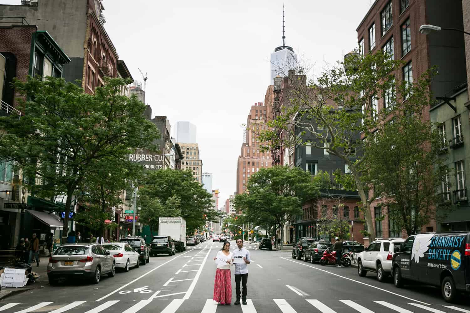 By the way, no special props or signs are needed for your thank you signs. Aadhya and Aarav simply asked their hotel — the Sheraton Tribeca — for a few pieces of paper and a marker. Voilà! Instant thank you signs.