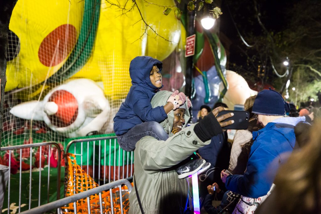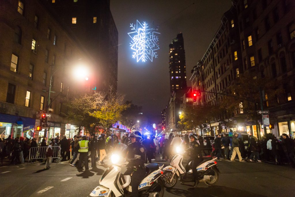 Now, however, the word is out and seemingly the entire city attended last night’s event. I waited in line three hours to see the balloons, and I have to be honest — this will be my final year attending. (And in case you are wondering why I waited that long, keep in mind that once you get in the line it is nearly impossible to escape.) I think there were several factors affecting the wait time. First, thanks to the terrorists, there is now a security line that you have to go through. A police officer — and God bless all the many officers who were standing out in the cold to keep everyone safe and orderly last night — looks through your bag briefly with a flashlight. The act, while I’m sure necessary, seemed like a pointless gesture of safety designed to simply add time to your wait. Also, due to security concerns, the hours have changed: the event now ends at 8:00 p.m., rather than 10:00 p.m. I can remember going to see the balloons at a much later time when all of the kiddies were in bed. Those times are gone.