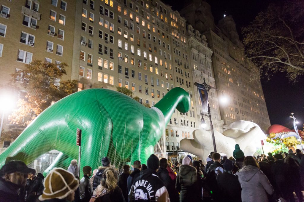 I should note that in thinking about my gripes about last night’s event, perhaps it is obvious that I have truly become a New York City elitist. The ‘Inflation Celebration,’ as it is now called, used to be an event that only NYC natives knew about. While the parade has always been terribly crowded with tourists, residents of this fine city knew that to truly get close to the balloons you should hike up to the upper west side and check out the balloons as they were being inflated the night before the parade. There is still something amazingly surreal about seeing a giant inflated Pikachu just sitting on the street in front of an apartment building. It is still an ‘only in New York’ moment as residents in the windows above look down on giant balloon characters while children on the street below marvel as their cartoon heroes come to life.