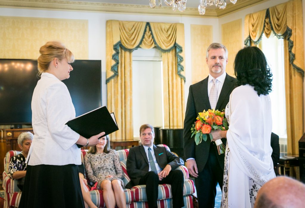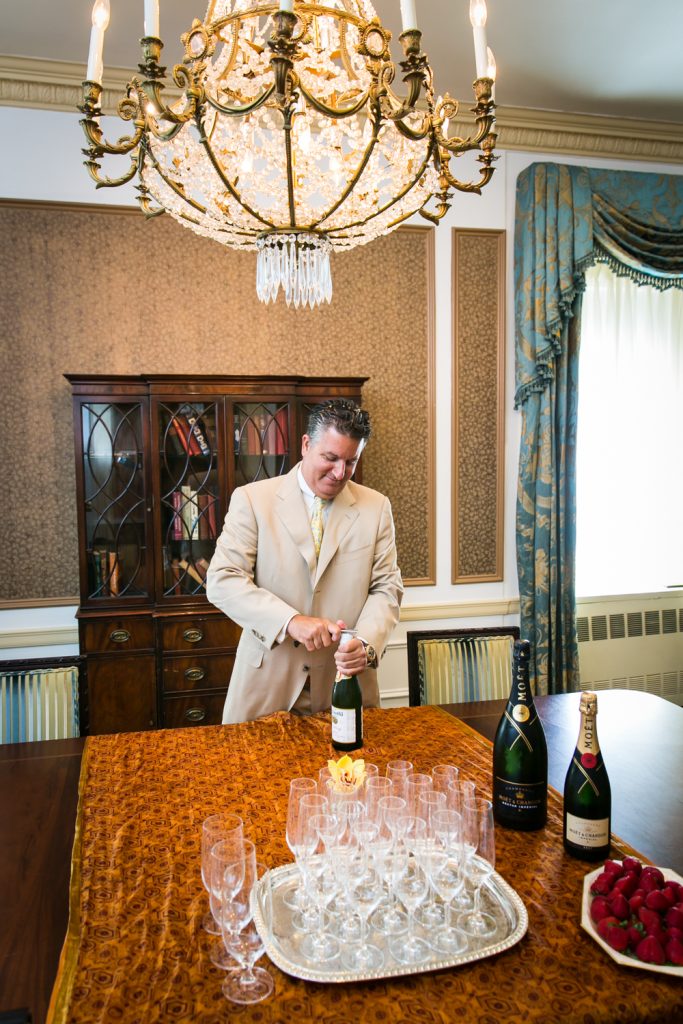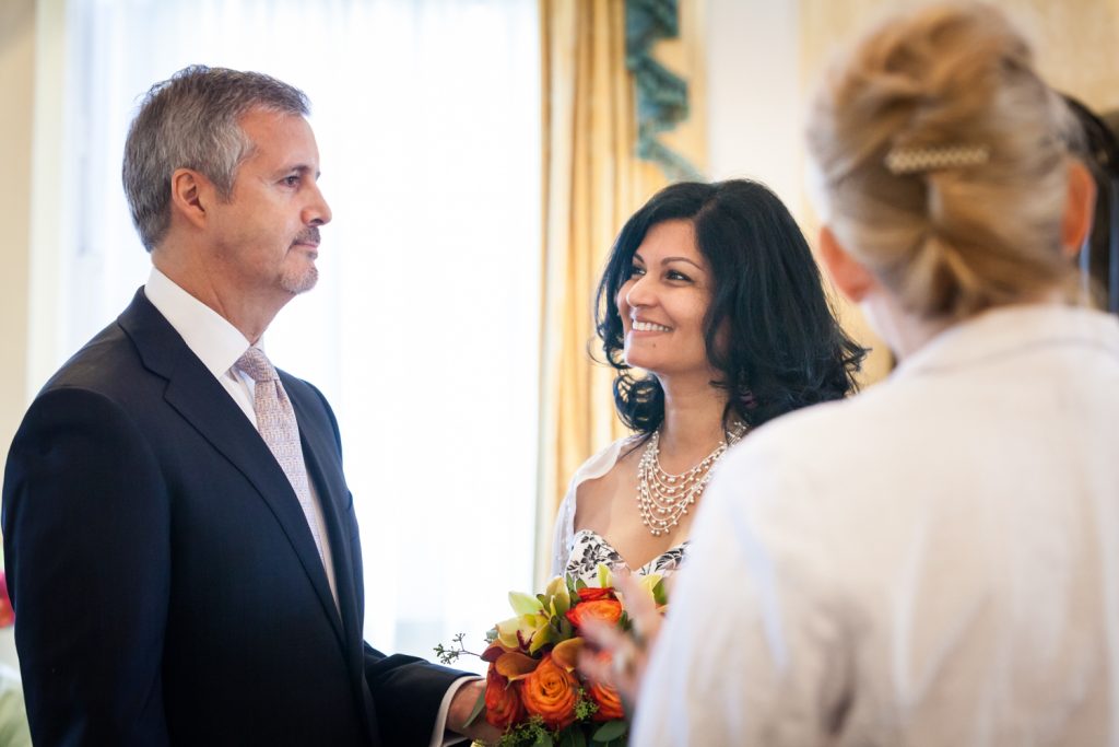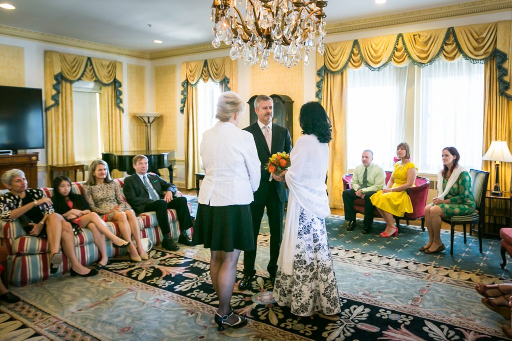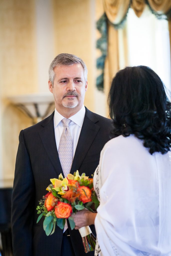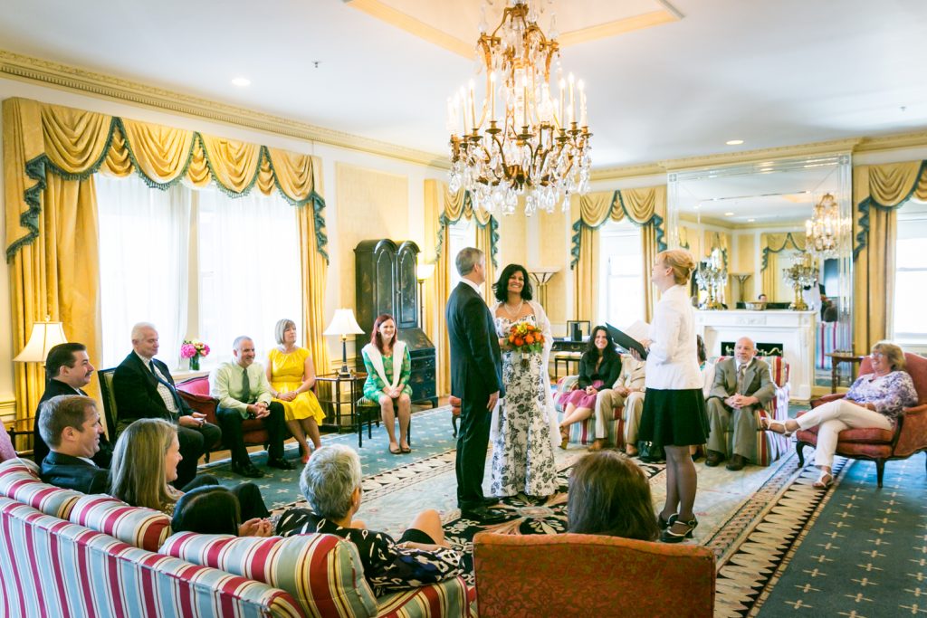 How about a little touch of glamour to get your weekend started? Jill and Ed are two of my favorite clients from this year whose Waldorf Astoria wedding was brimming with elegant and unique details. To start with, they were married in a suite that was the the luxurious former residence of the Crown Prince of Saudi Arabia. I mean, if you’re going to do a small wedding, why not make it spectacular? The opulence of the suite and its sweeping views of midtown were matched with a cozy intimacy which was perfect for the small guest list.