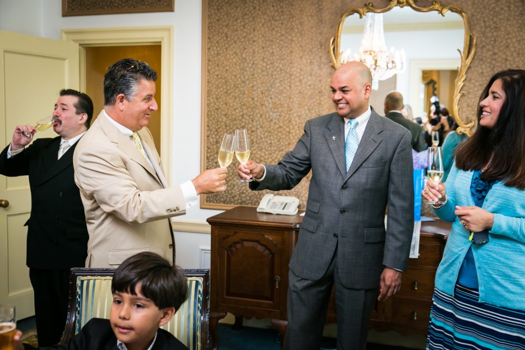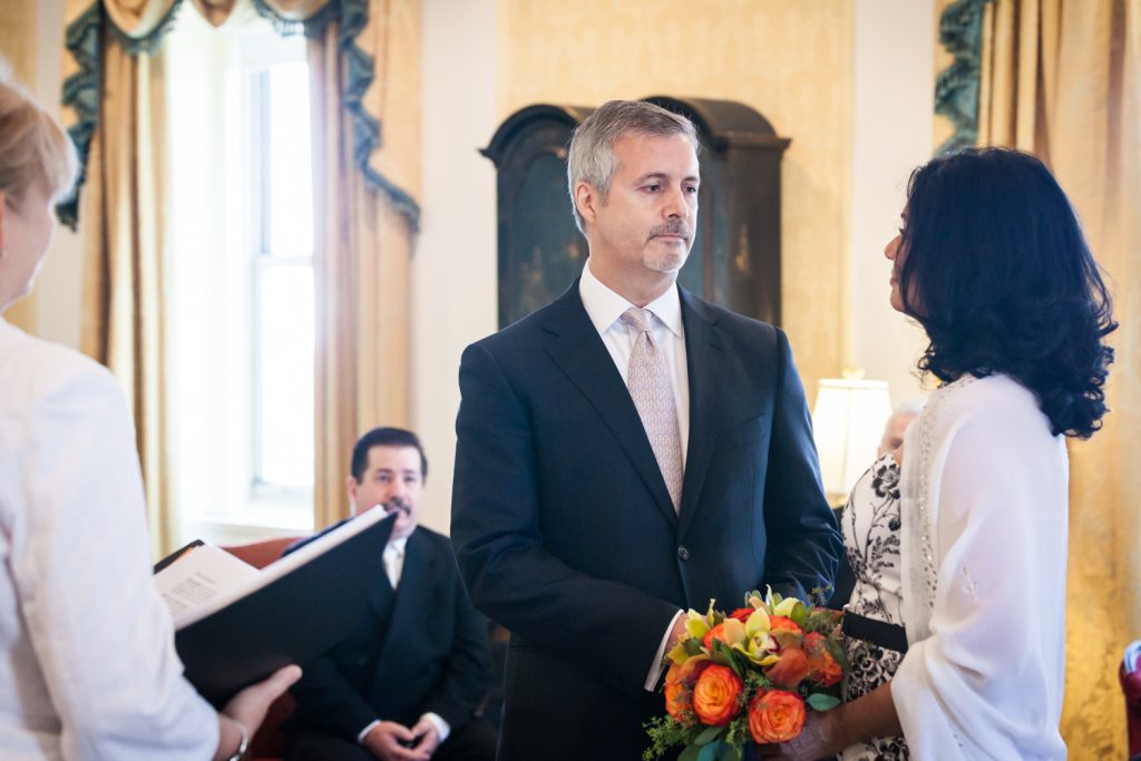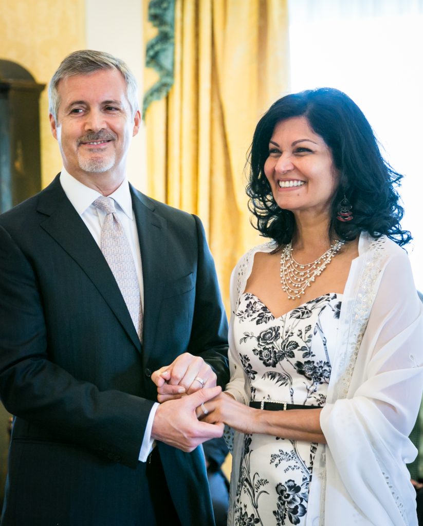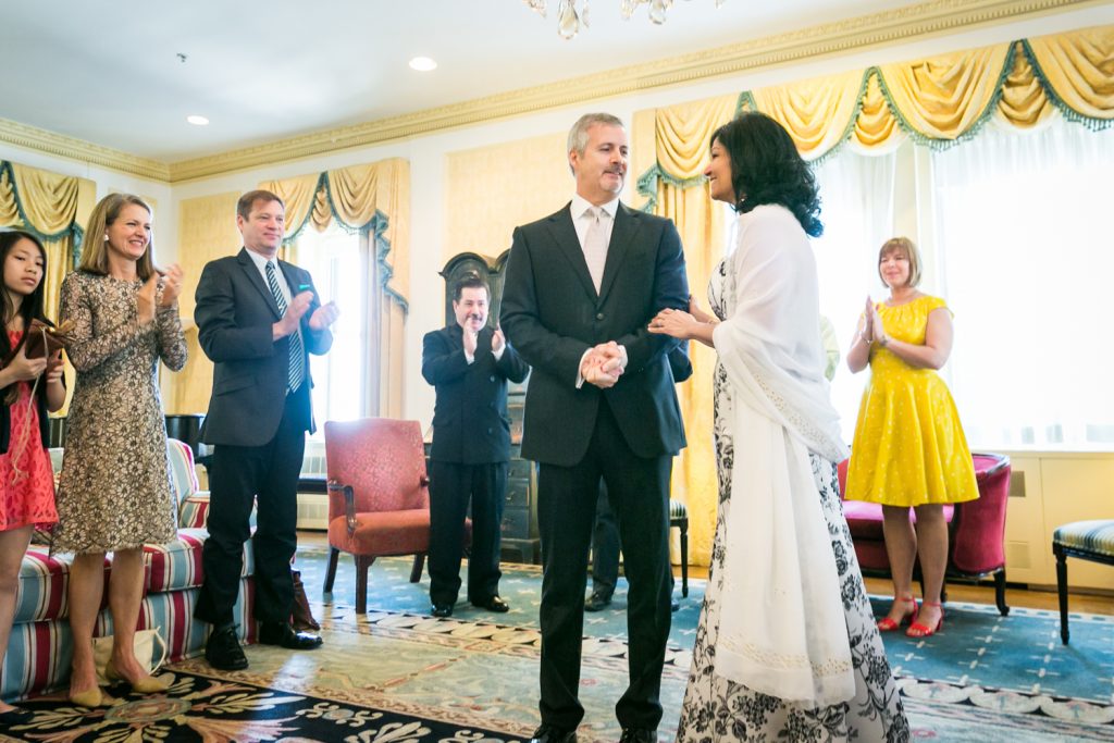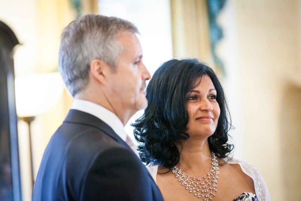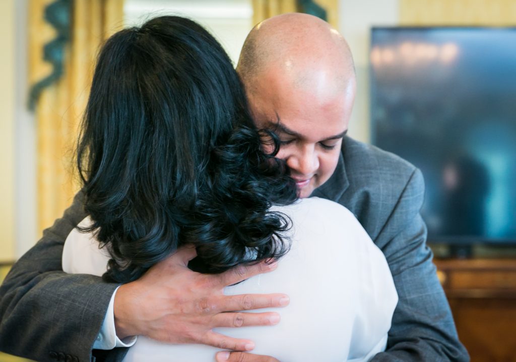 How about a little touch of glamour to get your weekend started? Jill and Ed are two of my favorite clients from this year whose Waldorf Astoria wedding was brimming with elegant and unique details. To start with, they were married in a suite that was the the luxurious former residence of the Crown Prince of Saudi Arabia. I mean, if you’re going to do a small wedding, why not make it spectacular? The opulence of the suite and its sweeping views of midtown were matched with a cozy intimacy which was perfect for the small guest list.