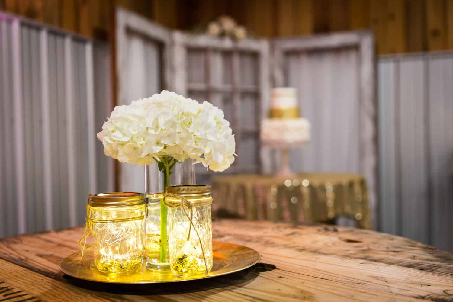 Flowers are really expensive. Aside from your venue, catering, and the bar, flowers are the most expensive line item in your wedding budget. Cut out the costs with alternative centerpieces that either do not use flowers or use flowers sparingly. (Check out my article on Non-Floral Centerpiece Ideas.) Also consider other table fillers that are easy to create at a fraction of the cost such as these mason jars created with fairy lights and jute string for Bita and Randy’s wedding.