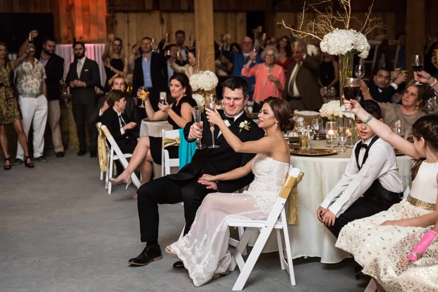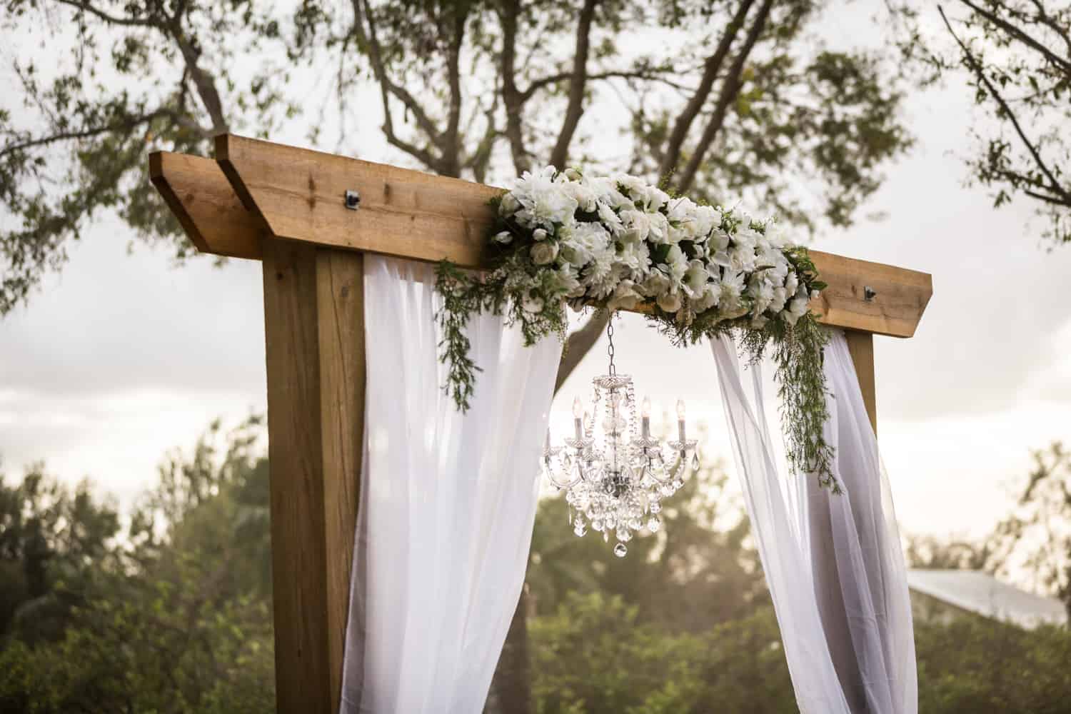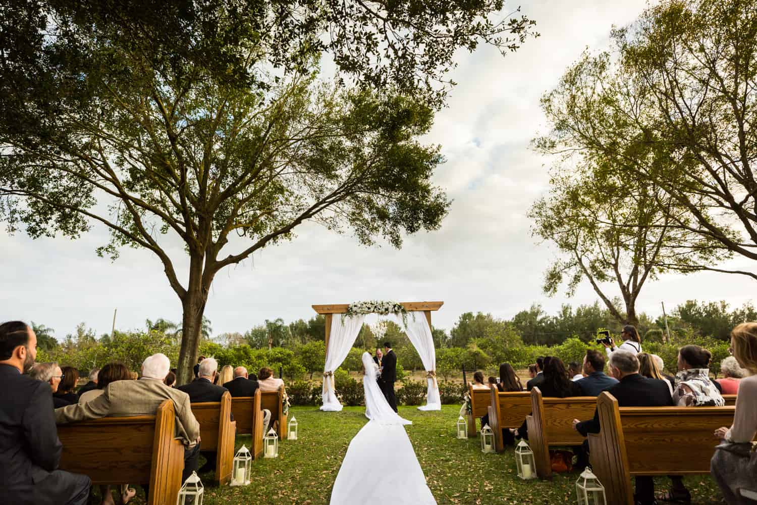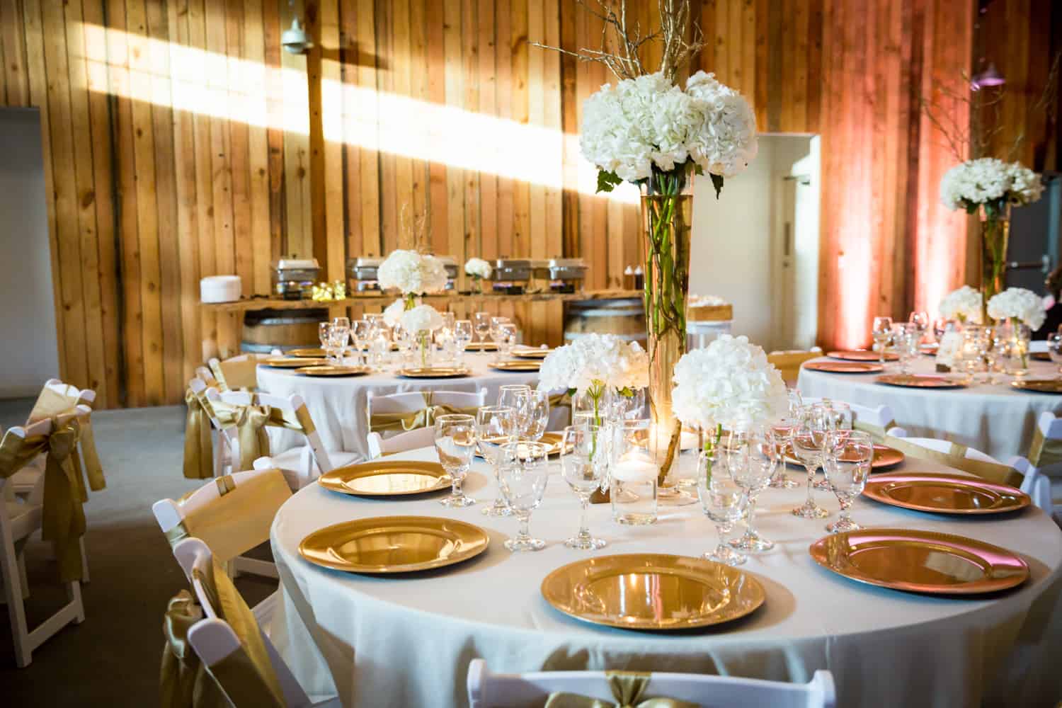 For your venue, choose a customizable space. The big downside for empty venues is that you have to provide everything – including tables, chairs, and catering. But the upside is that you can completely control the costs. Bita and Randy chose The Barn at Azalea Oaks. The venue was an open barn, and had plenty of parking, a gorgeous outdoor chandelier for the ceremony, lakeside access for photos, and sheep (!). What more could you want? Other empty venue options include art galleries, theaters, and wineries. These venues are blank canvases upon which you can create your ultimate wedding within a budget you can afford.