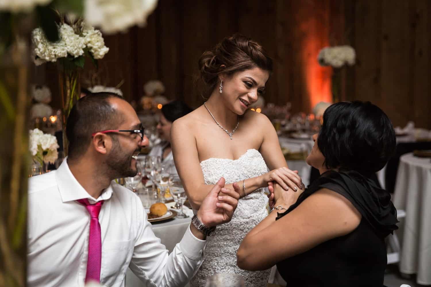 Glasses, napkins, and silverware. If you booked a venue that provides everything, you won’t need to worry. But for anyone like Bita and Randy who booked an empty venue space, you will need to provide all your own tables, chairs, napkins, and the like. Shop around rental providers to get the best deal. Make sure you check with the venue first, as they most likely will have items on hand that you can rent directly from the venue. It may cost more, but the time you save in getting everything on-site may be worth the cost.