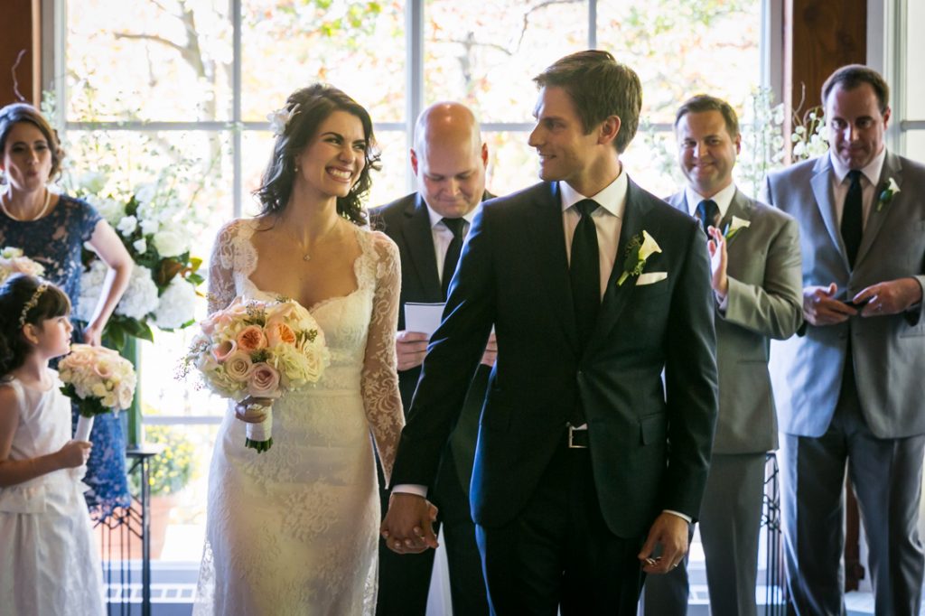 6. Give the audience clear directions. It is traditional for guests to stand when the bride comes down the aisle. I once photographed a wedding where the officiant – bless his heart – forgot to tell the audience to sit down after the bride arrived at the altar. The audience remained standing for the entire ceremony. If people need to participate in the ceremony – such as a guided reading, sing-along, or ring warming ceremony – then make sure to let people know how to act and when.