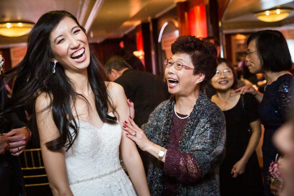 The military maneuvers for the rest of the family photos continued at the reception, where we got the DJ involved. Jane and Matt had several large – and I mean LARGE – groups of family members to photograph. Really the only place to take these photos (especially since we couldn’t go outside since it was wet) was the dance floor during the reception. Thankfully, we employed the DJ and his microphone to call people to the dance floor and get the next group ready for photos. It was a efficient operation: I remained on the dance floor, standing on a stool with my wide lens, and the large family groups would simply get in line and be photographed one after another. This is how all family photo sessions should happen at a wedding.